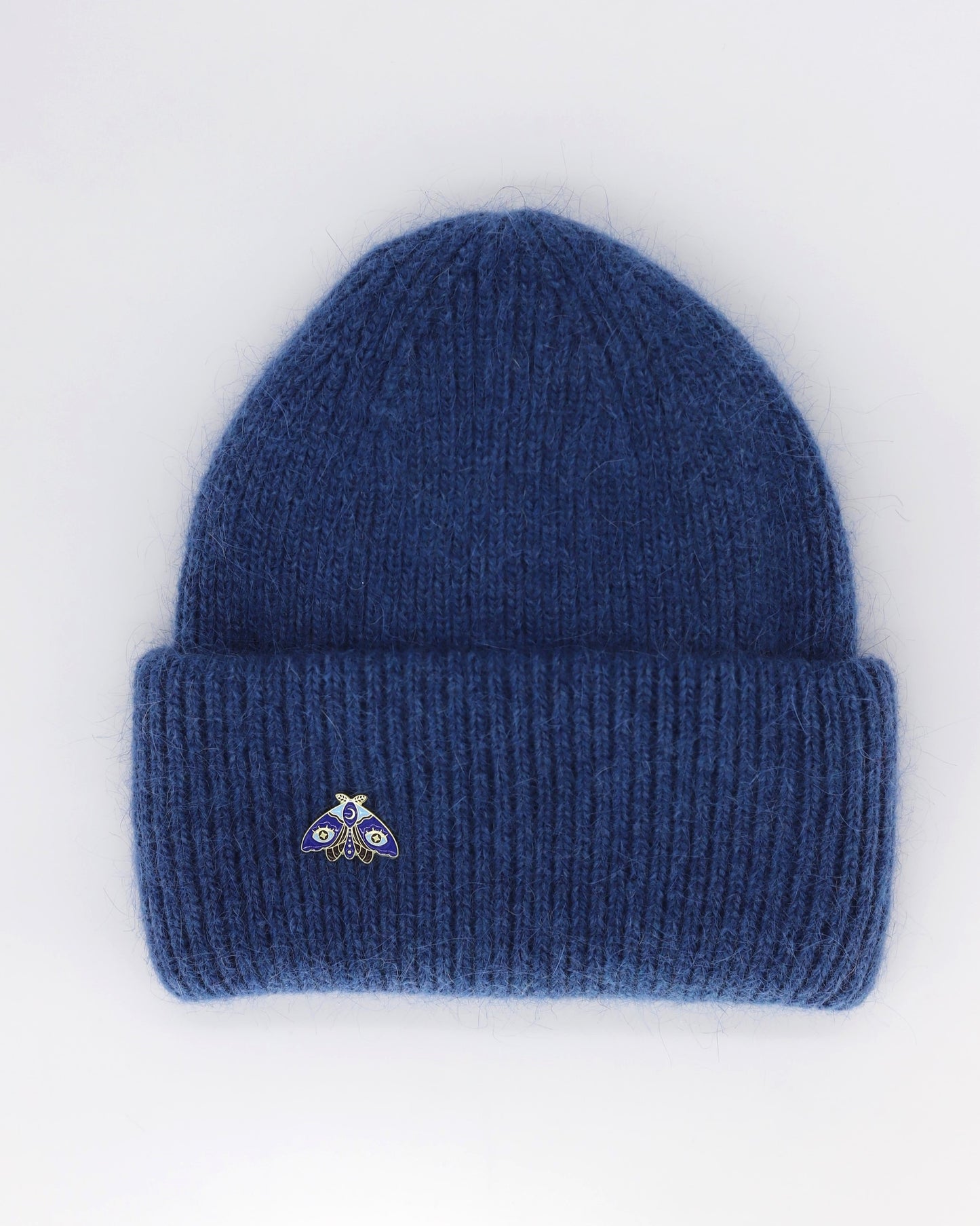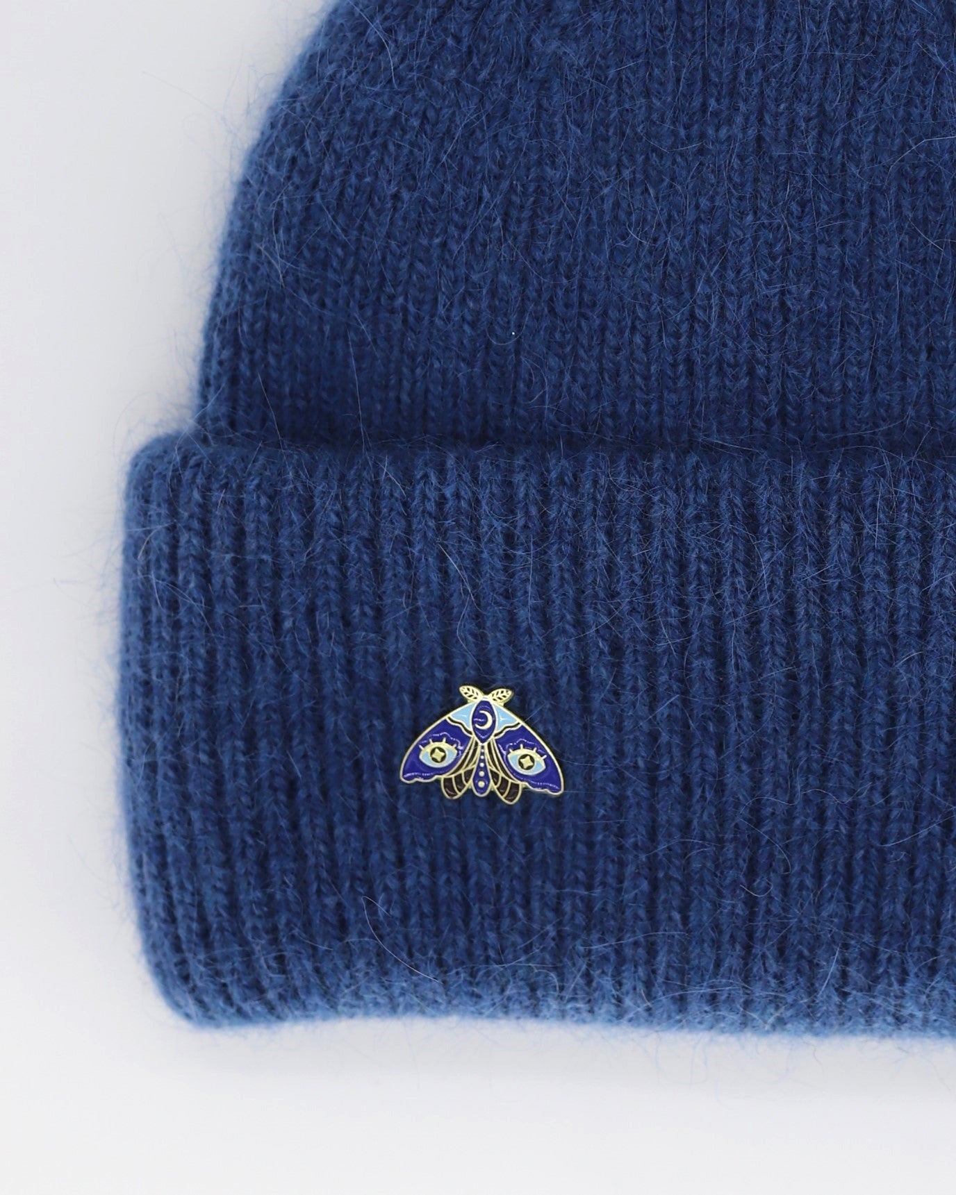 This Hat is a finest hat with a classic silhouette. A luxurious accessory for women made from the softest natural angora and sheep wool for extreme comfort and warmth. It is made in a trendy navy blue color accompanied by an elegant pin.